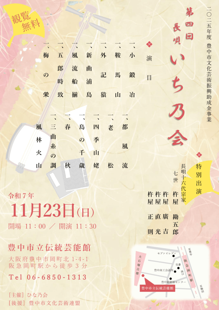 | 11月23日 豊中市立伝統芸能館 | 第四回 長唄 いち乃会 |